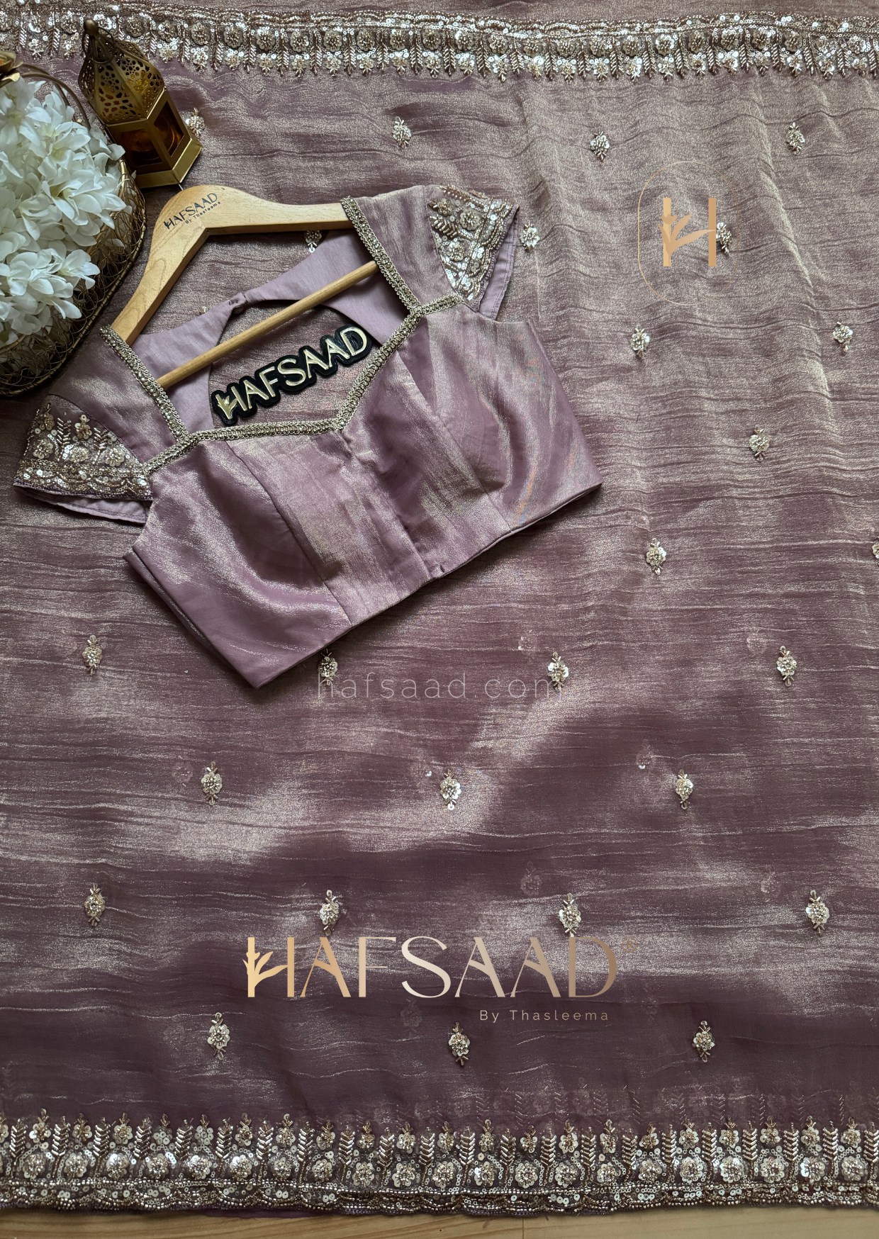 Amara- Crushed pure tissue silk saree (British Rosegold)