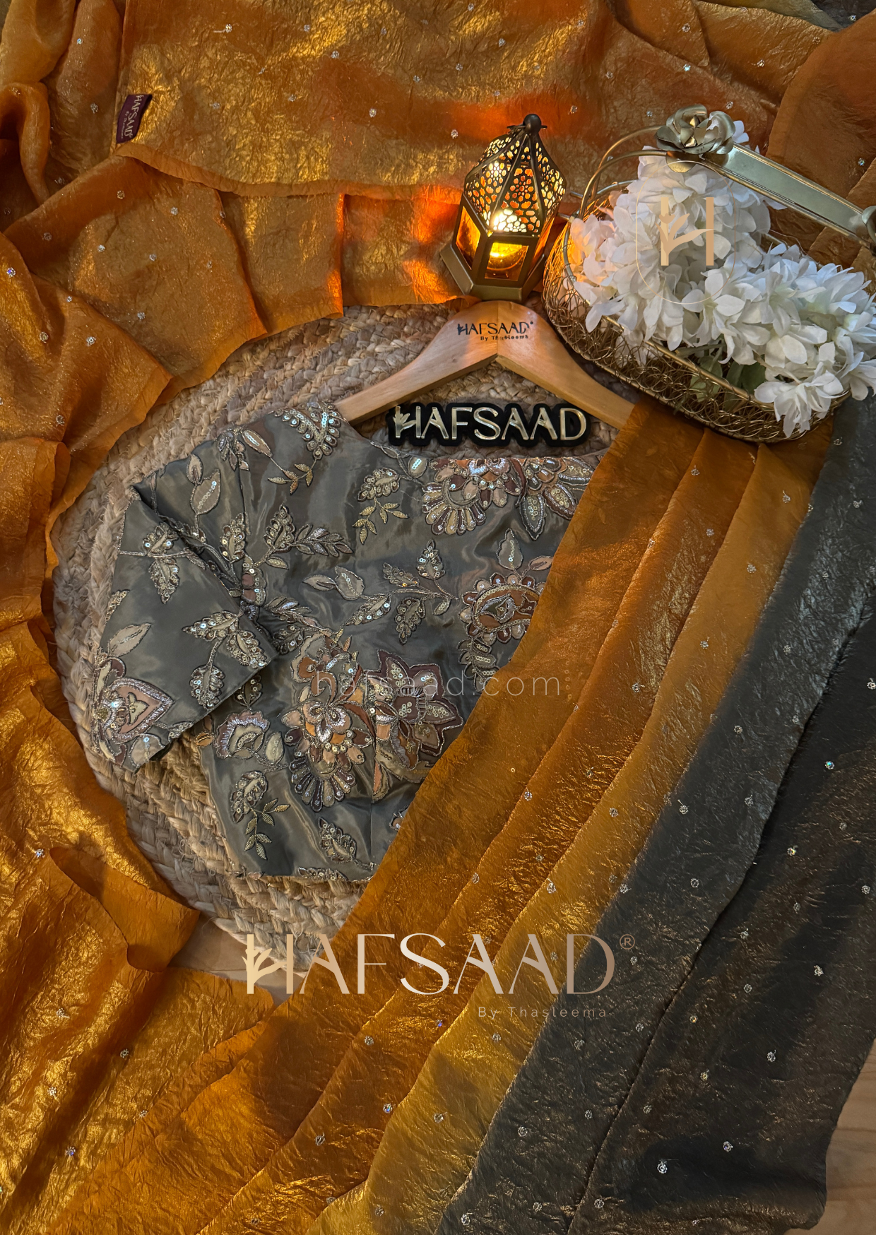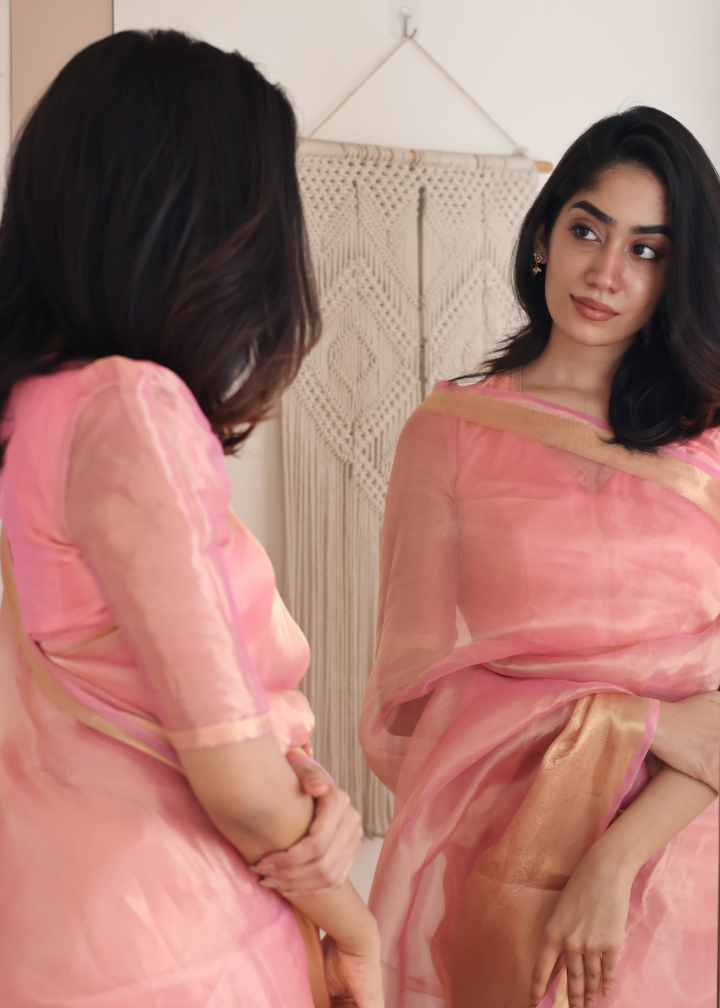 Get ready to be redefined by this exquisite semi tissue silk saree, inspired by a lady whose softness hums, and grace and beauty blend and intertwine.